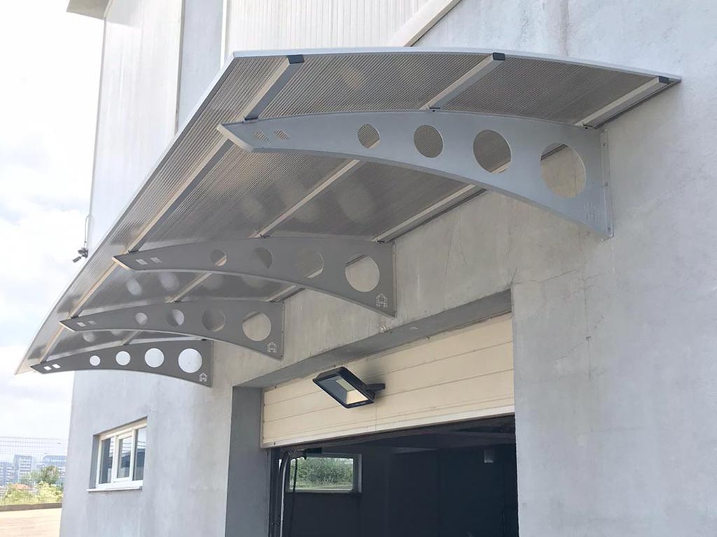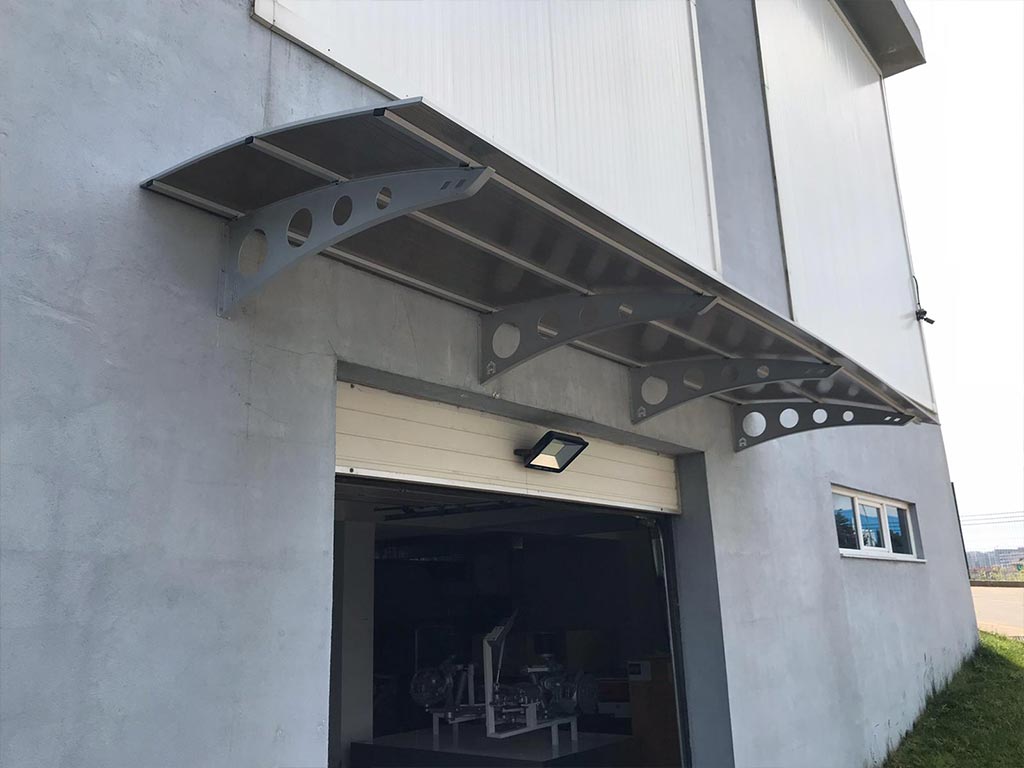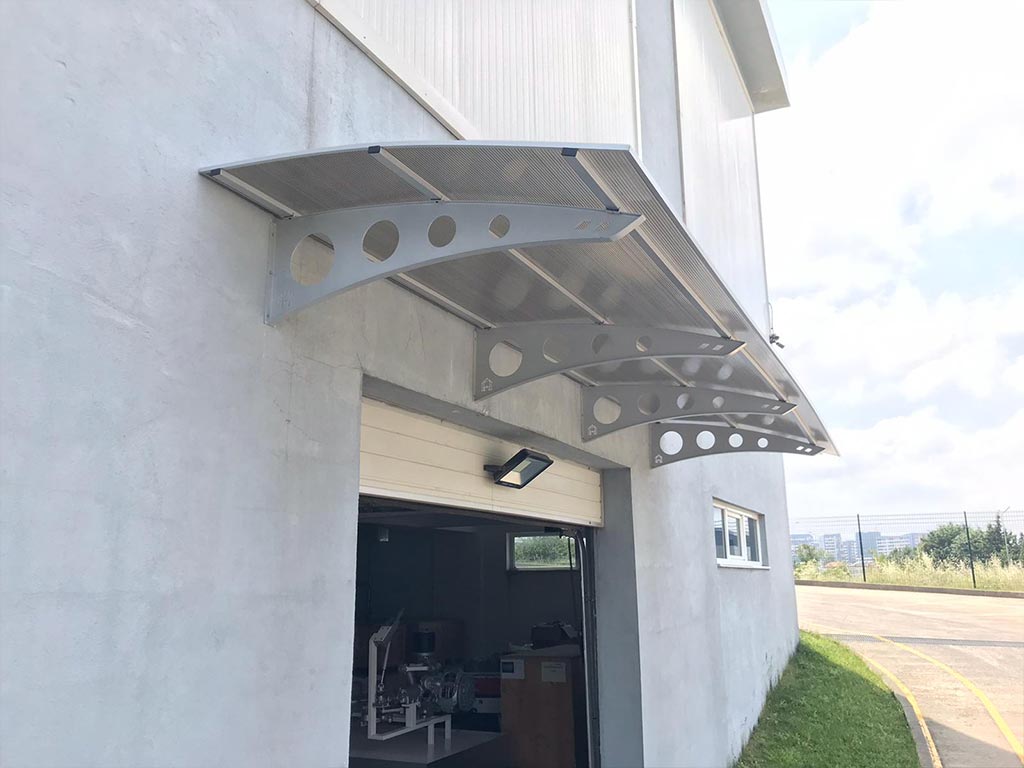 Seksiyonel kapı üstü sundurmalar, modern mimariye uyum sağlayan tasarımlarıyla cephe estetiğini güçlendirir. Metal taşıyıcı ve şeffaf polikarbon kombinasyonları, hem sağlam hem de zarif bir görünüm oluşturur.